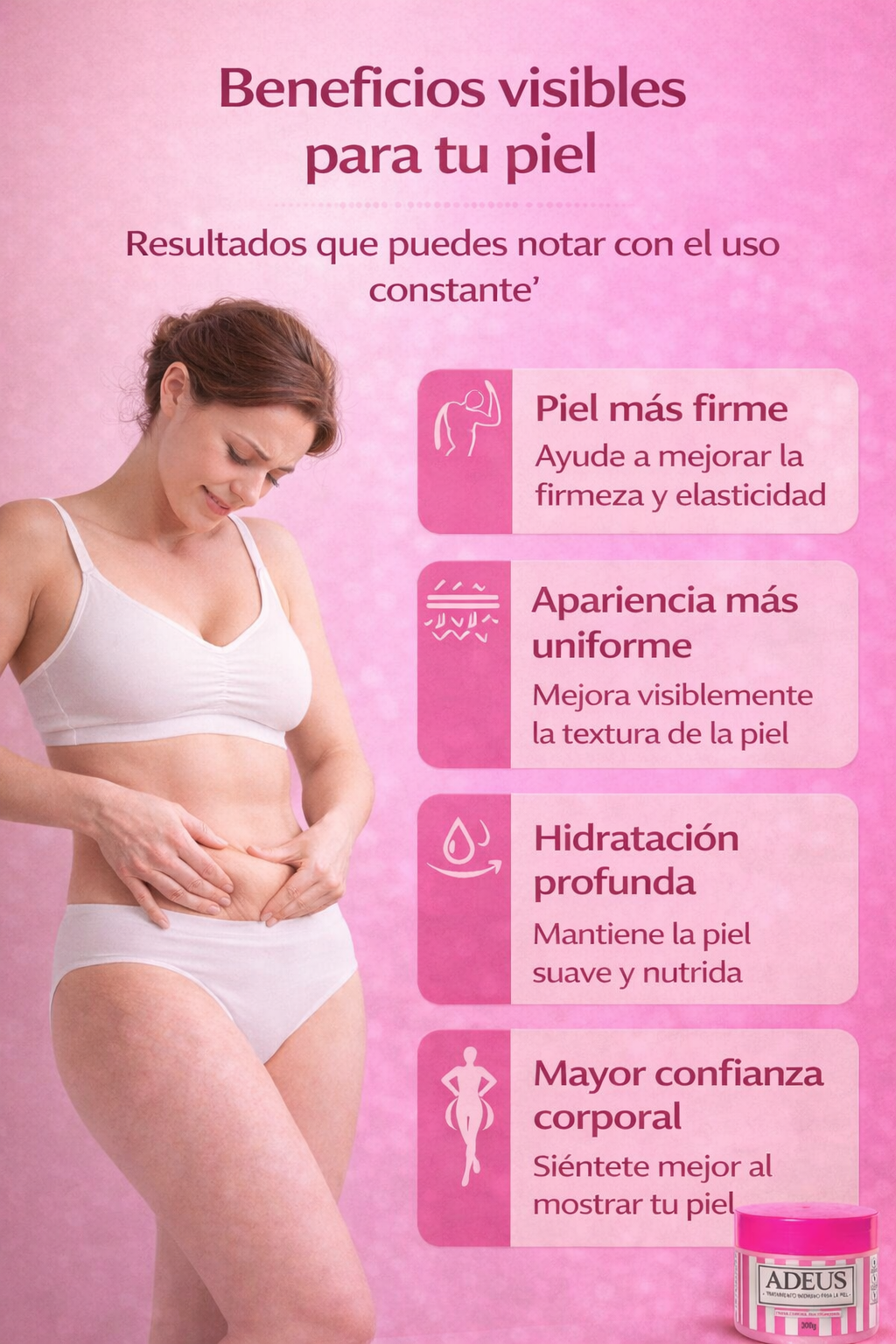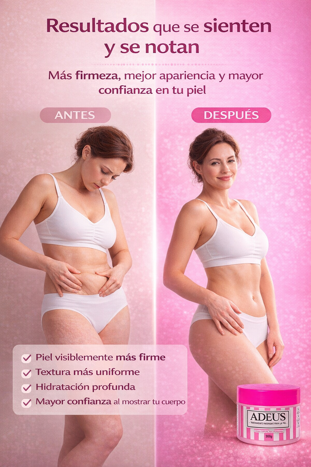 Tu piel merece sentirse firme, uniforme y radiante otra vez. ¡Recupérala con ADEUS!